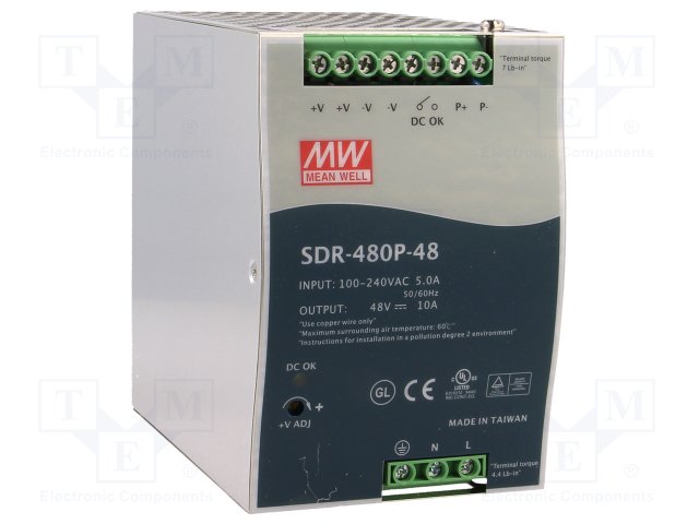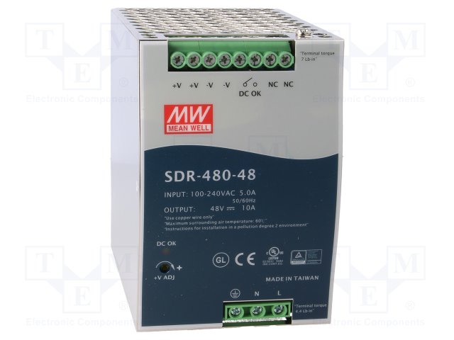 Блок питания: импульсный; 480Вт; 48ВDC; 48÷55ВDC; 10А; 90÷264ВAC |