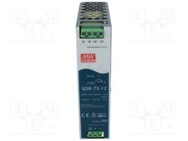 Блок питания: импульсный; 75,6Вт; 12ВDC; 12÷14ВDC; 6,3А; 88÷264ВAC |