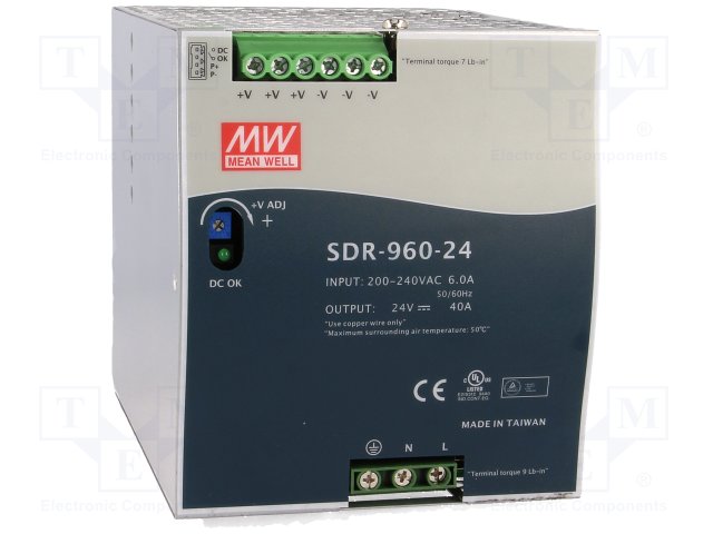 Блок питания: импульсный; 960Вт; 24ВDC; 40А; 450÷600ВDC; OUT: 1 |