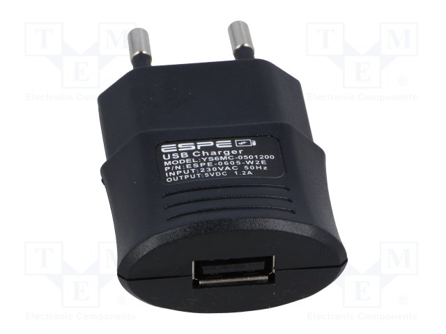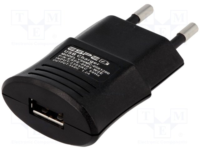 Блок питания: импульсный; 5ВDC; 1,2А; Вых: USB; 6Вт; Вилка: EU