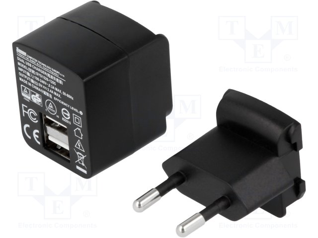 Блок питания: импульсный; 5ВDC; 2,4А; Вых: USB x2; 12Вт; Вилка: EU