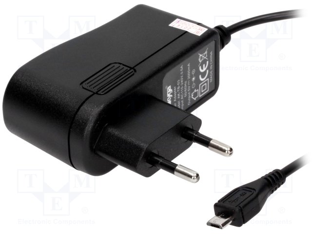 Блок питания: импульсный; 5ВDC; 2,5А; Вых: micro USB; 11Вт; 5÷50°C