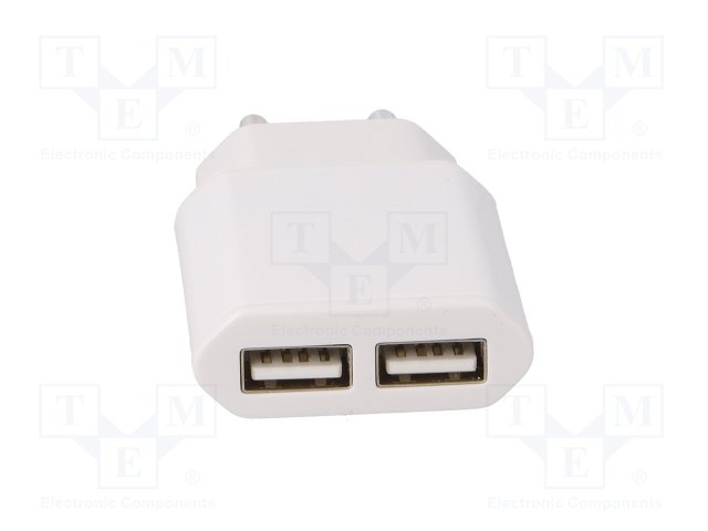 Блок питания: импульсный; 5ВDC; 2,1А; Вых: USB x2; 10,5Вт; Вилка: EU