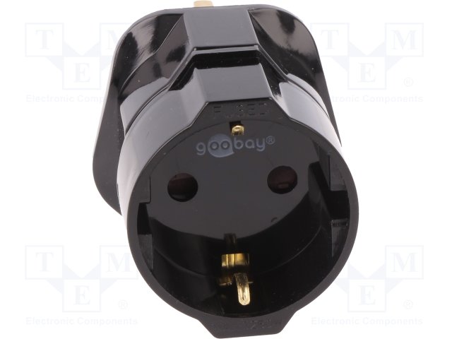 Адаптер; Вых: EU; Вилка: с заземлением; Цвет: черный; Вх: UK