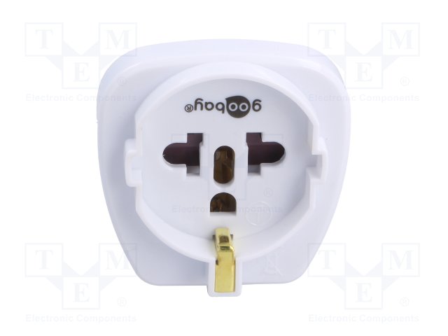 Адаптер; Вых: EU; Вилка: с заземлением; Цвет: белый; Вх: UK