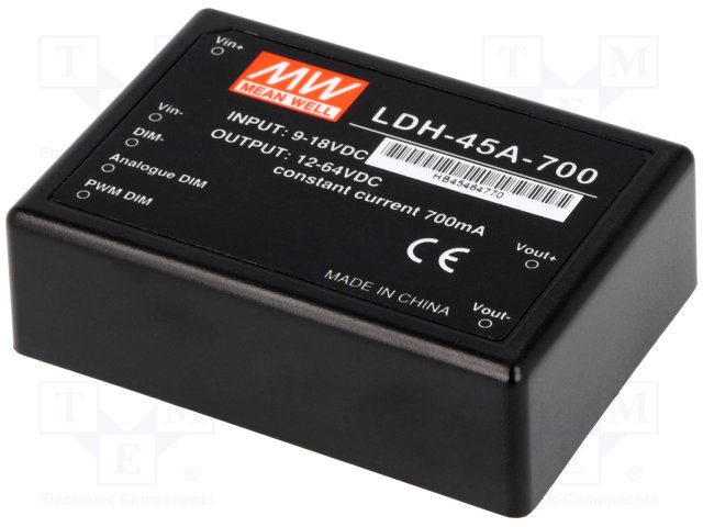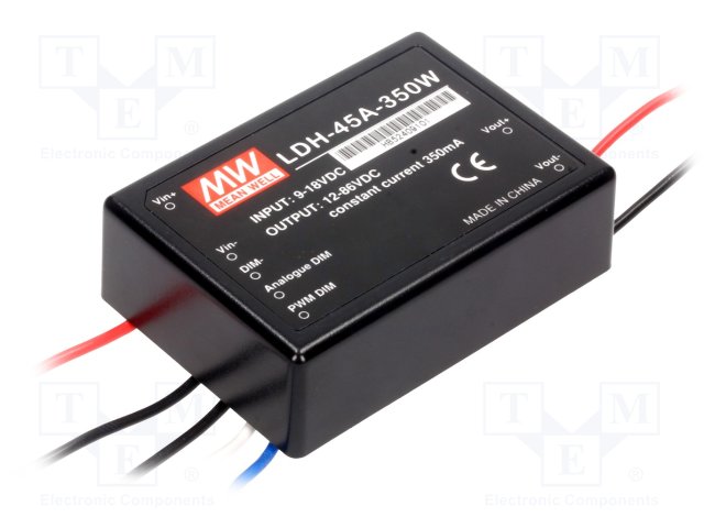Преобразователь: DC/DC; 45Вт; Uвх: 9÷18В; Uвых: 12÷43ВDC; Iвх: 4,2А |