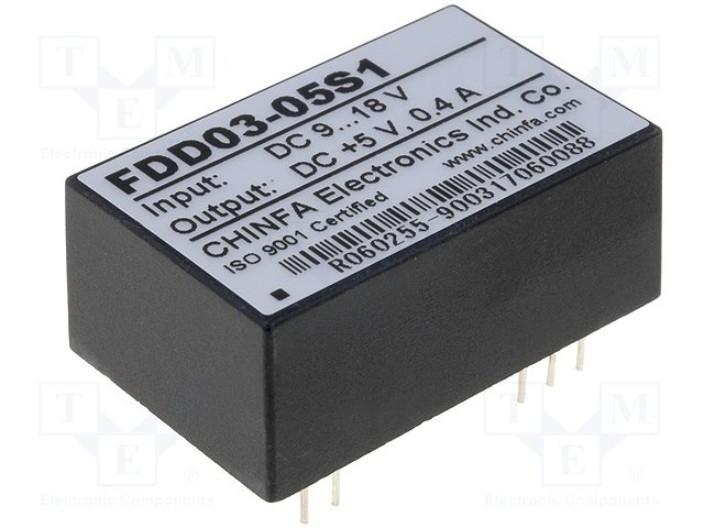 Преобразователь: DC/DC; 2Вт; Uвх: 9÷18В; 5ВDC; Iвых: 400мА; КПД: 63% |