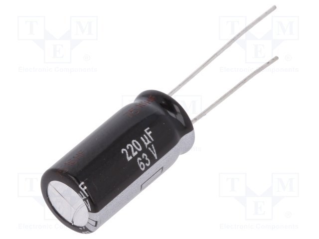 Конденсатор: электролитический; THT; 220мкФ; 63ВDC; Ø10x20мм; ±20%