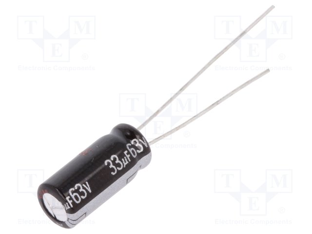 Конденсатор: электролитический; THT; 33мкФ; 63ВDC; Ø6,3x15мм; ±20%