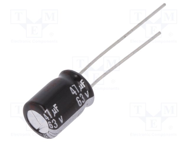 Конденсатор: электролитический; THT; 47мкФ; 63ВDC; Ø8x11,5мм; ±20%