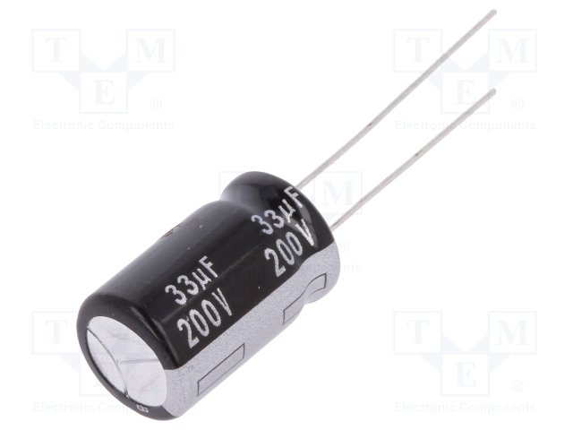 Конденсатор: электролитический; THT; 33мкФ; 200ВDC; Ø12,5x20мм