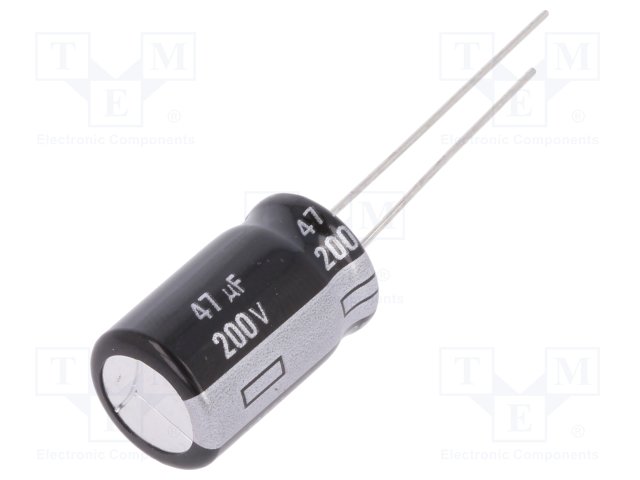 Конденсатор: электролитический; THT; 47мкФ; 200ВDC; Ø12,5x20мм