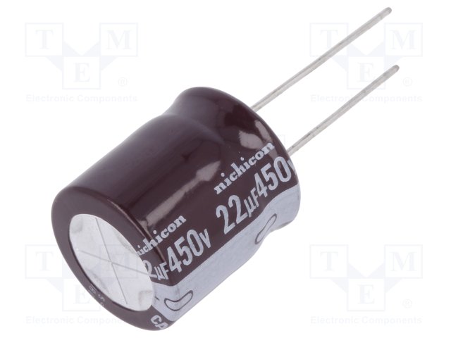 Конденсатор: электролитический; THT; 22мкФ; 450ВDC; Ø18x20мм; ±20%