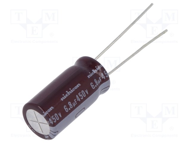Конденсатор: электролитический; THT; 6,8мкФ; 450ВDC; Ø10x20мм