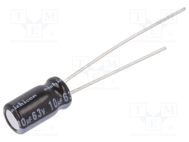 Конденсатор: электролитический; THT; 10мкФ; 63ВDC; Ø5x9мм; Шаг: 2мм