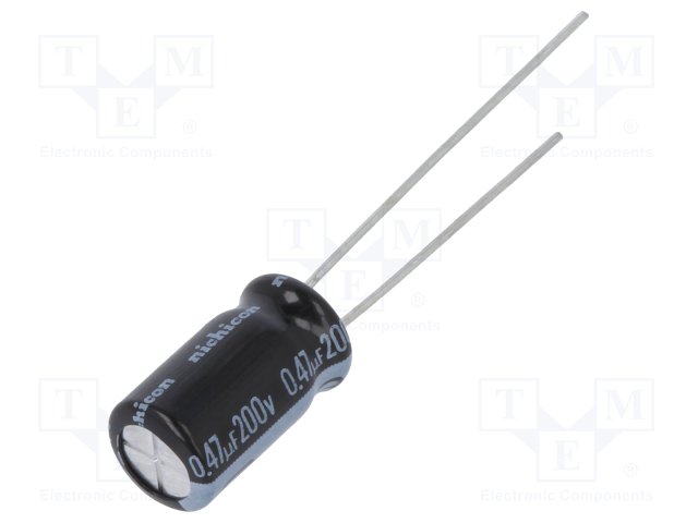 Конденсатор: электролитический; THT; 0,47мкФ; 200ВDC; Ø6,3x11мм