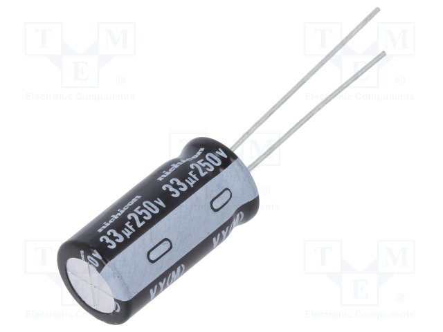 Конденсатор: электролитический; THT; 33мкФ; 250ВDC; Ø10x20мм; ±20%