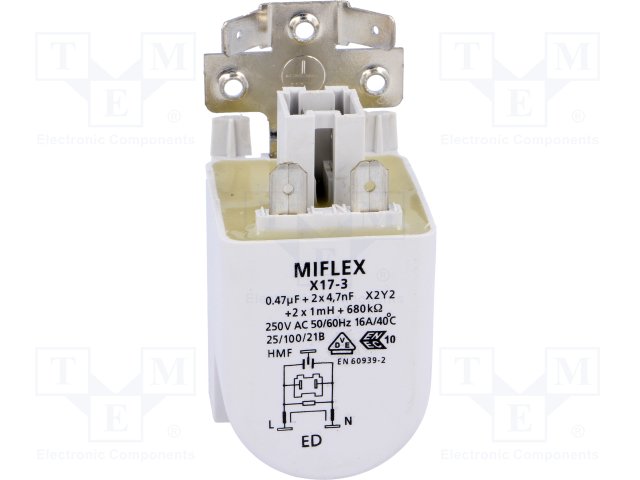 Фильтр: помехоподавляющий; сетевой; 250ВAC; Cx: 0,47мкФ; Cy: 4,7нФ