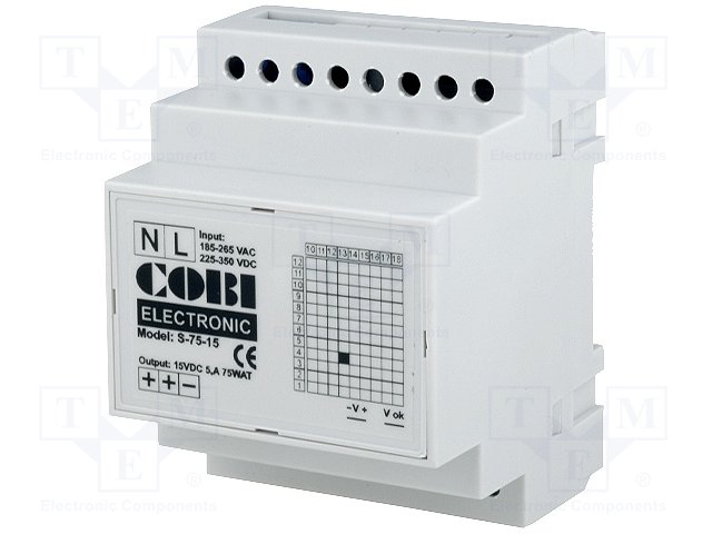 Блок питания: импульсный; 75Вт; 15ВDC; 5А; 85÷265ВAC; 90÷350ВDC