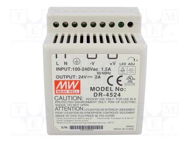 Блок питания: импульсный; 48Вт; 24ВDC; 21,6÷26,4ВDC; 2А; 85÷264ВAC