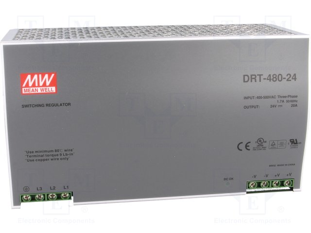 Блок питания: импульсный; 480Вт; 24ВDC; 24÷28ВDC; 20А; 480÷780ВDC