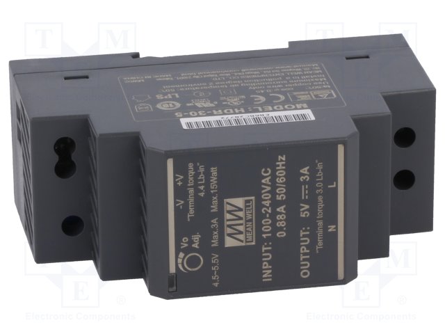 Блок питания: импульсный; 15Вт; 5ВDC; 4,5÷5,5ВDC; 3А; 85÷264ВAC