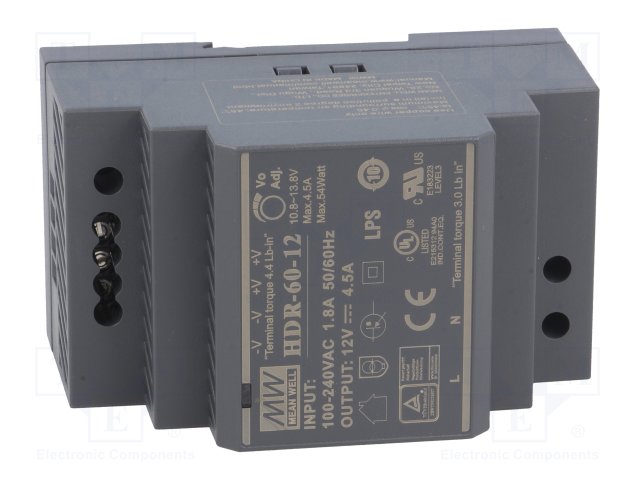 Блок питания: импульсный; 54Вт; 12ВDC; 10,8÷13,8ВDC; 4,5А; 190г