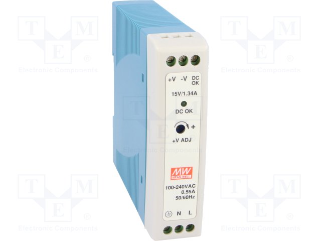 Блок питания: импульсный; 20Вт; 15ВDC; 1,34А; 85÷264ВAC; 190г; 81%