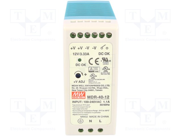 Блок питания: импульсный; 40Вт; 12ВDC; 12÷15ВDC; 3,33А; 85÷264ВAC