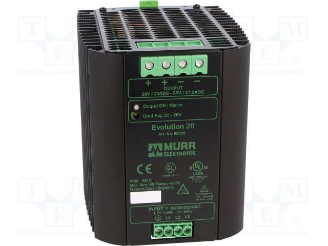 Блок питания: импульсный; 480Вт; 22÷28ВDC; 20А; 3x360÷520ВAC; IP20