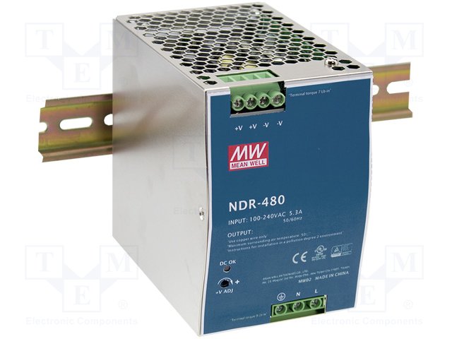 Блок питания: импульсный; тонкий; 480Вт; 24ВDC; 24÷28ВDC; 20А