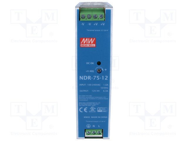 Блок питания: импульсный; 75,6Вт; 12ВDC; 12÷14ВDC; 6,3А; 90÷264ВAC