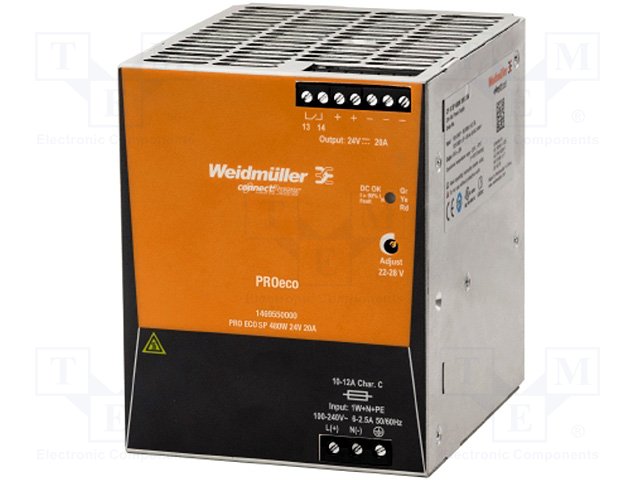 Блок питания: импульсный; 480Вт; 24ВDC; 20А; 450÷800ВDC; 1,6кг