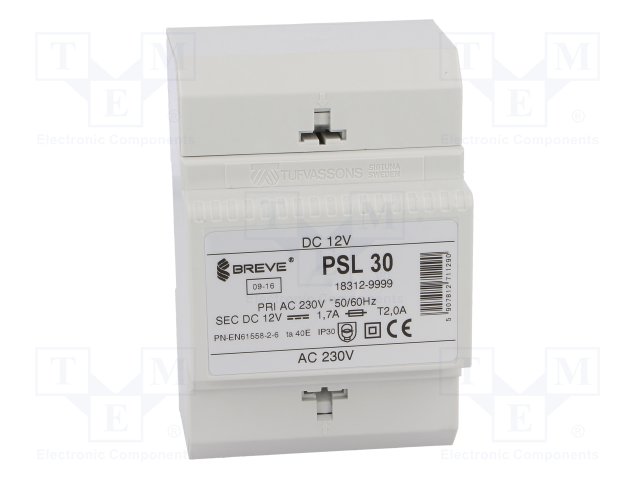 Блок питания: трансформаторный; нестабилизированный; 20Вт; 12ВDC