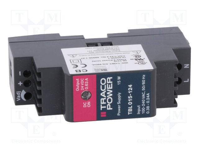 Блок питания: импульсный; 15Вт; 24ВDC; 24÷28ВDC; 0,63А; 85÷264ВAC