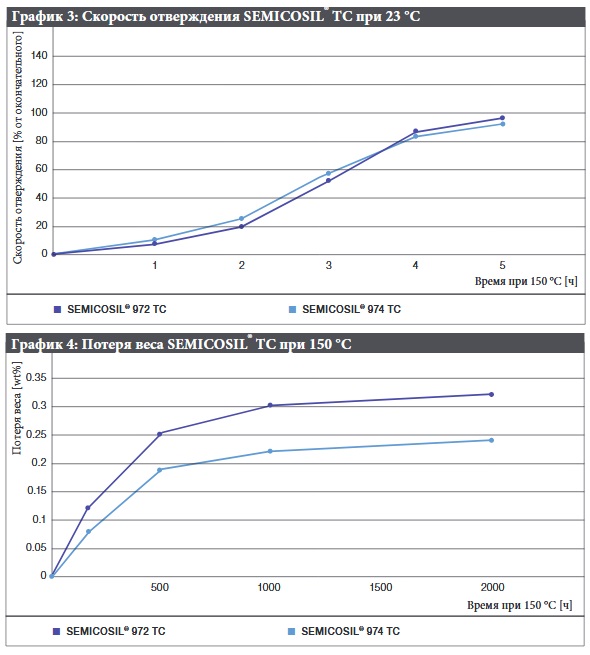 Еще одно преимущество теплопроводящих материалов WACKER состоит в том, что не требуется много времени на нагрев. Материалы вулканизируются при комнатной температуре. От четырех до шести часов для этого достаточно. Как показано на диаграмме 3, отверждение начинается сравнительно медленно. Это увеличивает время жизни смеси.