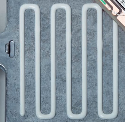Как вы защищаете чувствительную электронику на автомобилях от перегрева? С помощью теплопроводящих прокладок. Во-первых, вы наносите теплопроводящий SEMICOSIL ТС на алюминиевый литой корпус, в данном случае, на извилистый узор. Благодаря реологическим свойствам и разжижению при сдвиге пастообразных материалов, достигается точная дозировка шаблона. Затем нажимаете на печатную плату и SEMICOSIL ТС заполняет все до последней полости, даже самая маленькая шероховатость поверхности сглаживается. Через нескольких часов при комнатной температуре, материал отверждается и образует мягкую прокладку.