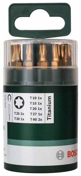Набор из 10 насадок-бит Titanium для шурупов с внутренним шлицем Torx (T) UH 54; T10; T15; T20; T25 (2x); T27; T30; T40 (2x); 25 мм