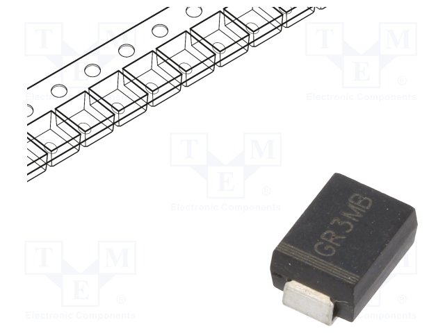Диод: выпрямительный; SMD; 1000В; 3А; Упаковка: бобина,лента; SMC