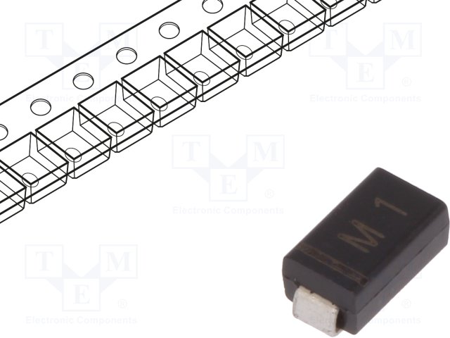 Диод: выпрямительный; SMD; 1кВ; 1А; Упаковка: бобина,лента; SMA