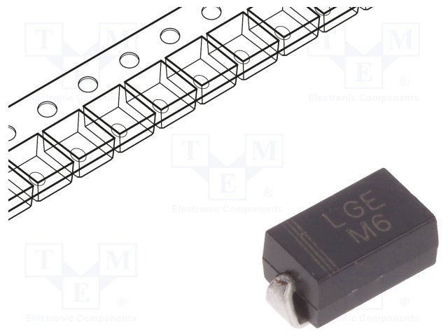 Диод: выпрямительный; SMD; 800В; 1А; Упаковка: бобина,лента; SMA