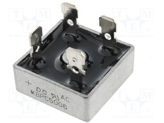 Однофазный выпрямительный мост; Urmax: 600В; If: 50А; Ifsm: 500А |
