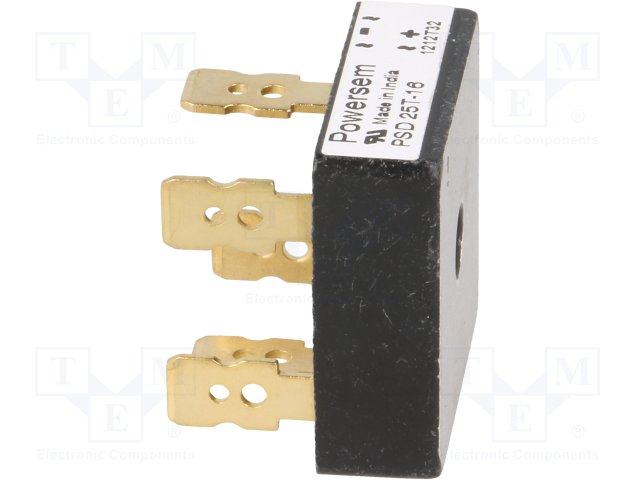 Трехфазный диодный мост; Urmax: 1200В; If: 25А; Ifsm: 380А; THT