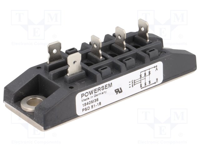 Трехфазный диодный мост; Urmax: 1800В; If: 35А; Ifsm: 550А; THT