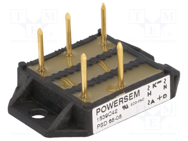Трехфазный диодный мост; Urmax: 0,8кВ; If: 68А; Ifsm: 300А; винтами