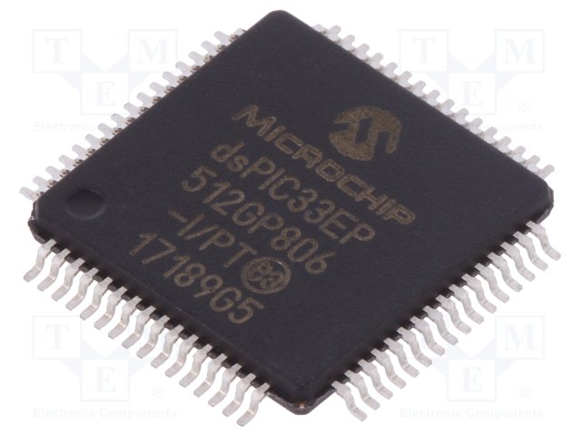 Микроконтроллер dsPIC; SRAM: 49кБ; Память: 512кБ; TQFP64; 3÷3,6В