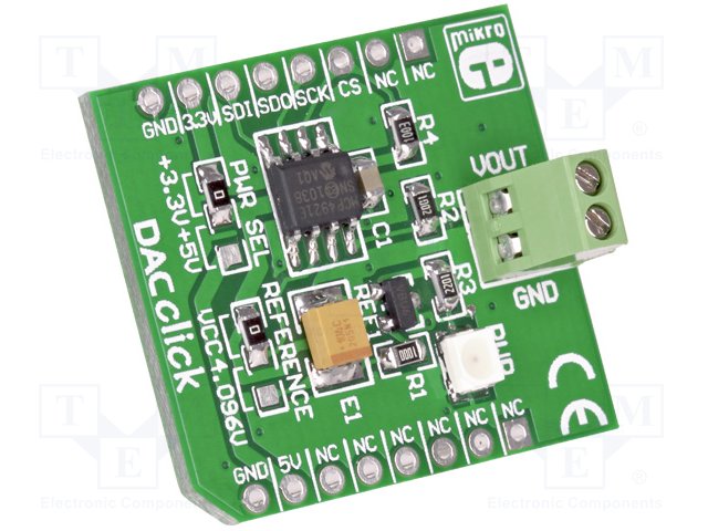 Click board; преобразователь D/A; SPI; MCP4921; 3,3/5ВDC
