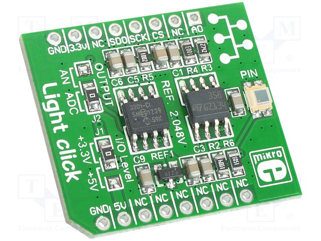 Click board; датчик освещения; SPI; mikroBUS вилка; 3,3/5ВDC