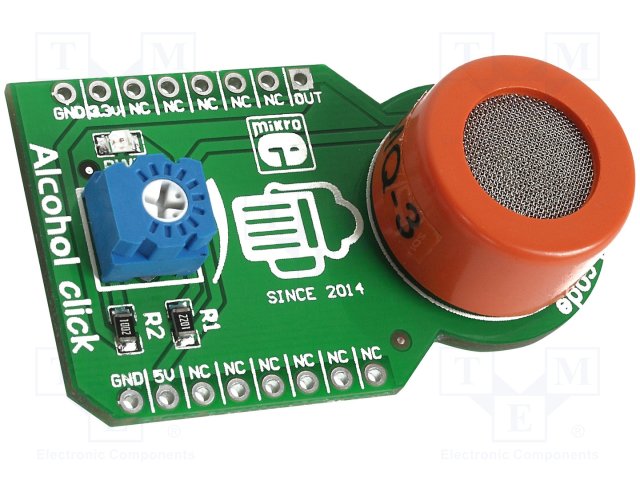Click board; датчик спирта; аналоговый; MQ-3; mikroBUS вилка