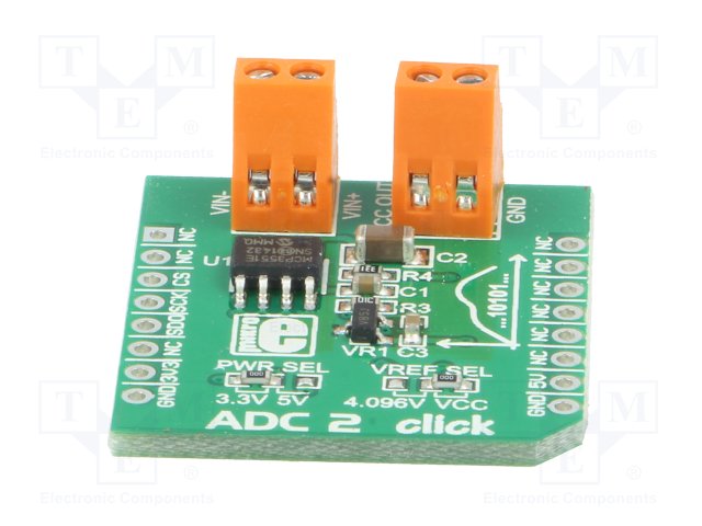 Click board; преобразователь A/D; SPI; MCP3551/3; mikroBUS вилка |